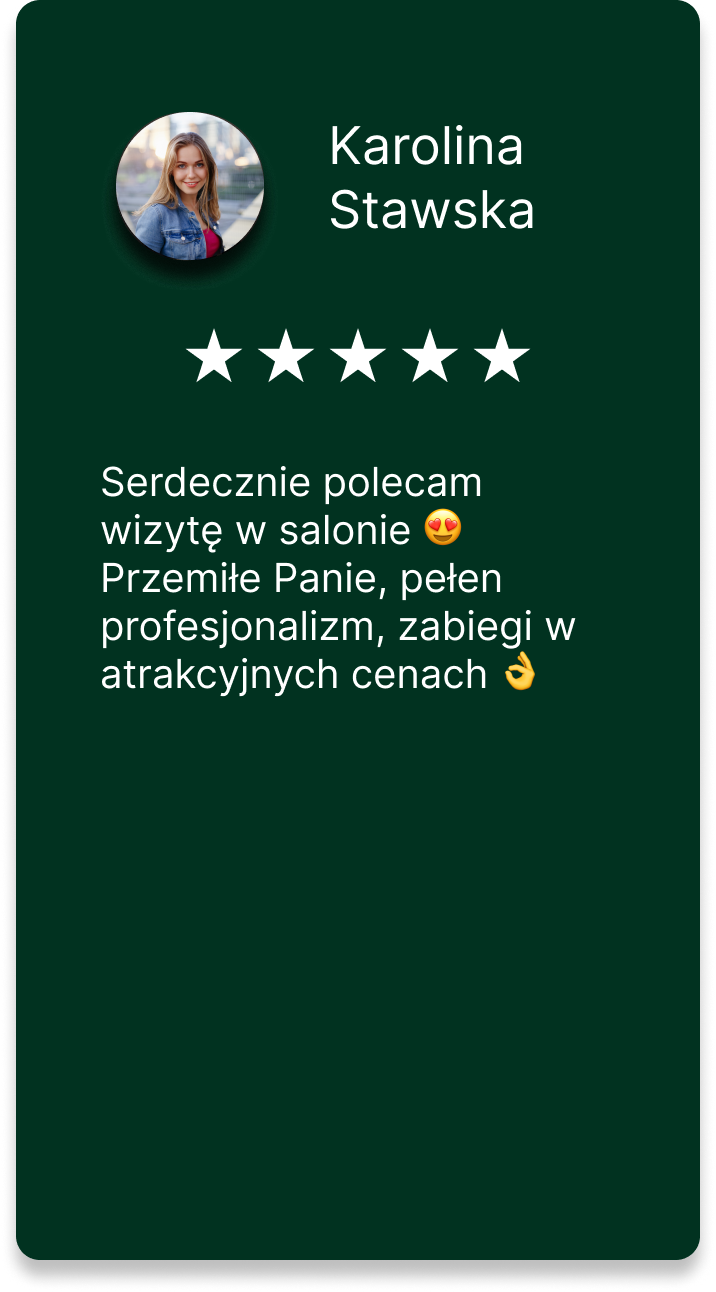 Doświadczeni profesjonaliści, którzy z pasją dbają o Twoje piękno i dobre samopoczucie. Każdy z nas oferuje indywidualne podejście oraz najwyższą jakość usług, abyś zawsze czuła się wyjątkowo.